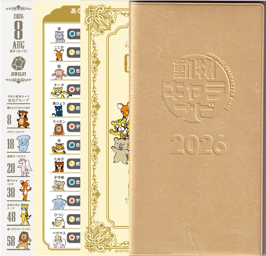 ・カバー:ゴールド(動物キャラナビ 数字2026の型押し)